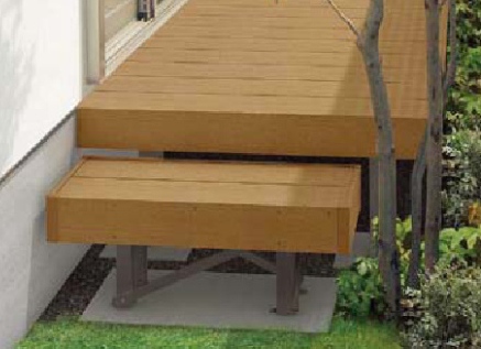 ![]() 階段は、デッキの形状に合わせて、段数や形状などフリーに設計することが可能です。 |