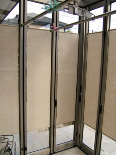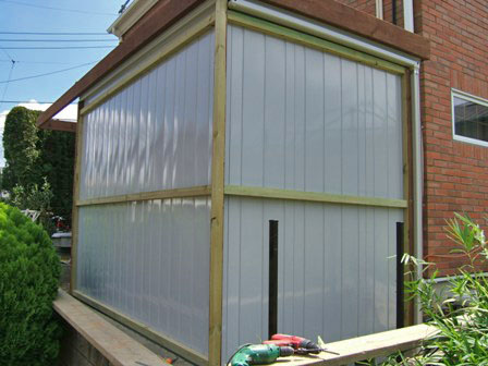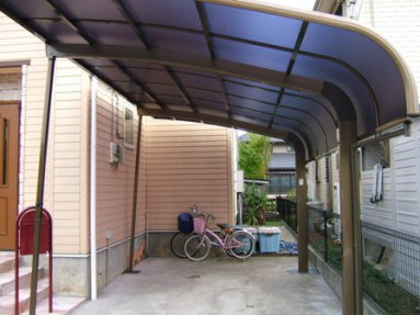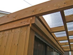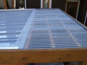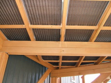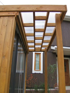 ![]() 屋根材としてポリカーボネート波板が張られていて、光を柔らかく通している。 |
