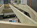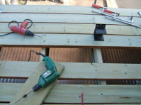 ![]() 床板を張っているところ。下に雨除けパネルが見えている。 |