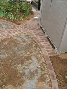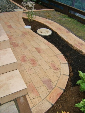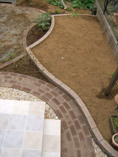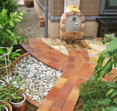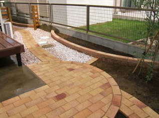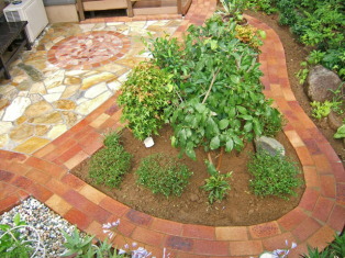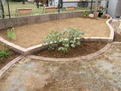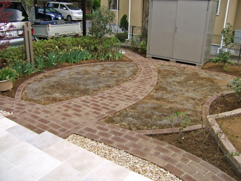 ![]() 花壇をレンガで囲み、歩きやすいように曲線でデザインした。 |