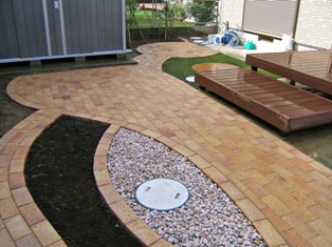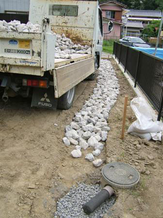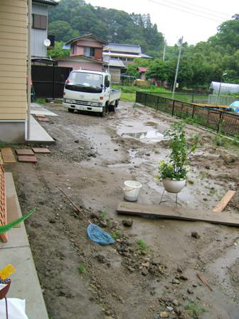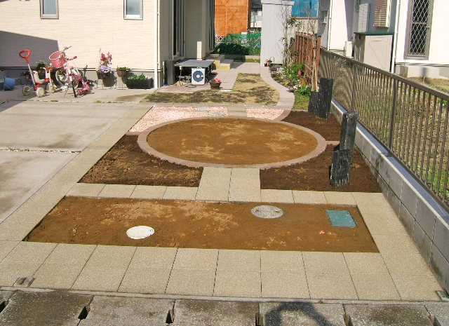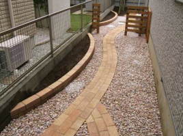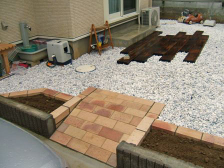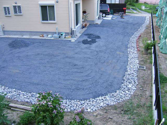 ![]() 子供さんが遊ぶと、砂利が飛び出して大変でした。そこで・・・ |