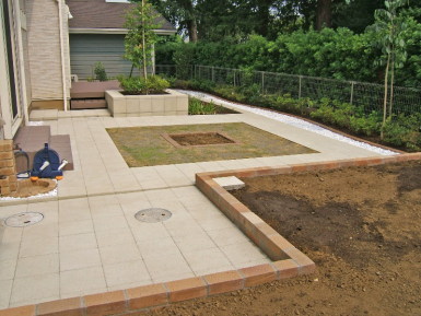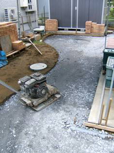 ![]() 下地からしっかり作るのがPHILOSの工事のスタンダード。 しっかりと地盤を突き固めている。 |