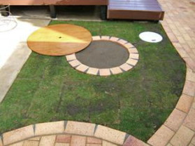 ![]() フタ付きの砂場は、第3の円。子供さんが大きくなったらここは花壇に。 |