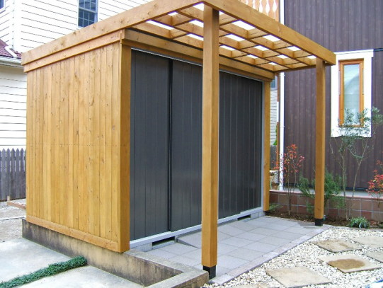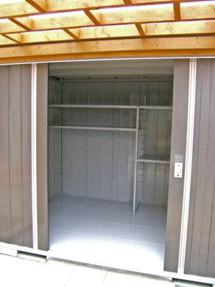 ![]() ・・・ウッドカバー物置が。その手前は家庭菜園。 |