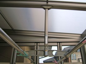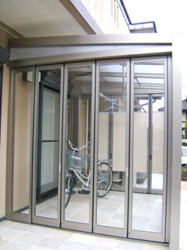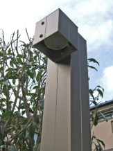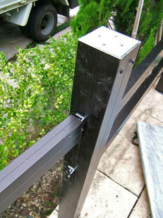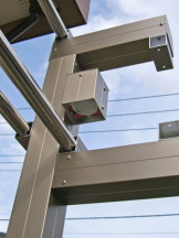 ![]() アルミ柱の中には、実は鉄骨の芯がすっぽりと入り強度をさらに高めている。 |