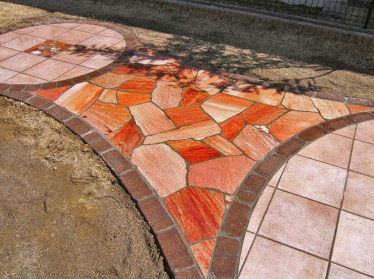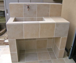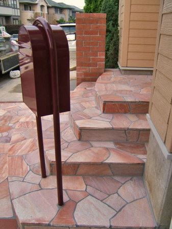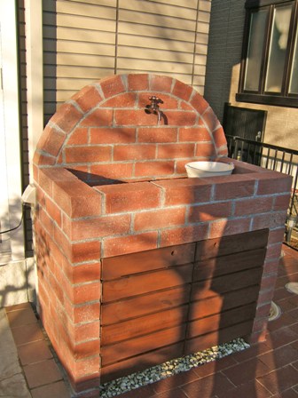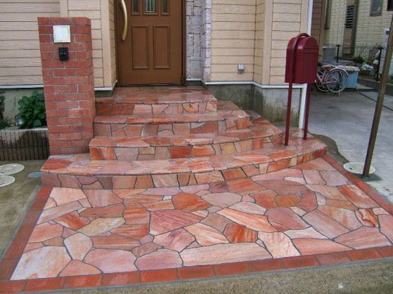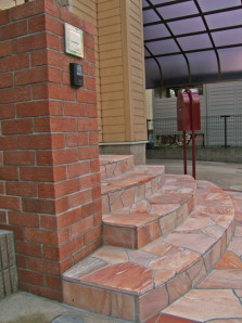 ![]() イエロー系の自然石を乱貼り。レンガの縁取りが効いている。 このすぐ後、大震災に見舞われたが、下地のコンクリートをしっかり打っていたので、ビクともしなかった。 |