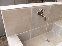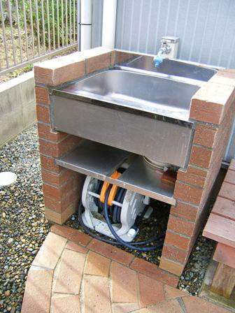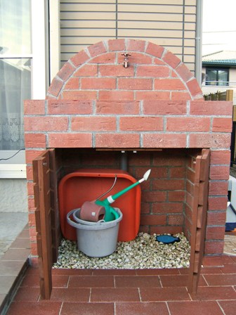 ![]() 建物際の水道は、立って使えるように親切設計。 |
