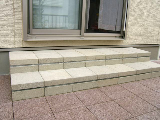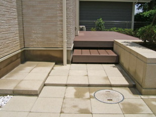 ![]() 排水マスをかわして、テラスのアクセントに ![]() 居間からのステップ |