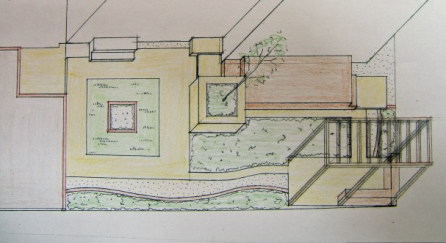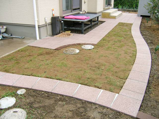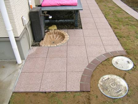 ![]() 水道流し(左側)前のやや広いスペースが、第4の円。芝生は必要最小限に。 |
