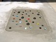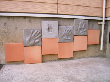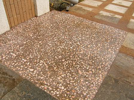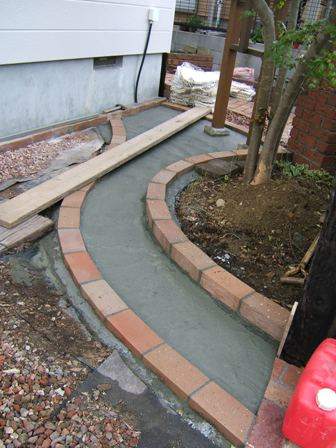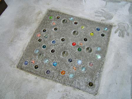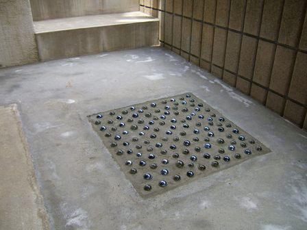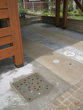 ![]() コンクリートで埋めたのですが、アクセントに、お客様が集めていたビー玉のためのスペースを2箇所。 スペースを四角く残しておいて、あとでゆっくりはめ込みました。 |