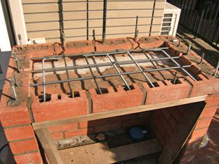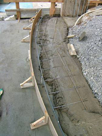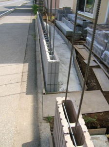 工事中![]() 鉄筋をしっかり配置する。 ![]() コンクリートを流したところ。 |