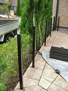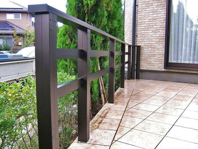 ![]() 重厚なアルミフェンスの完成。下のタイル貼りテラスに合っている。 |