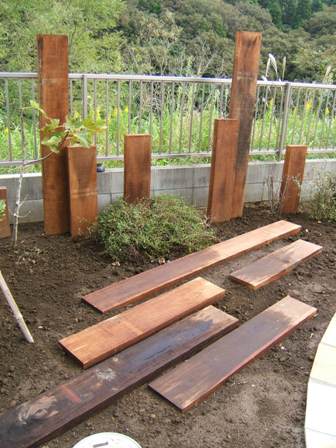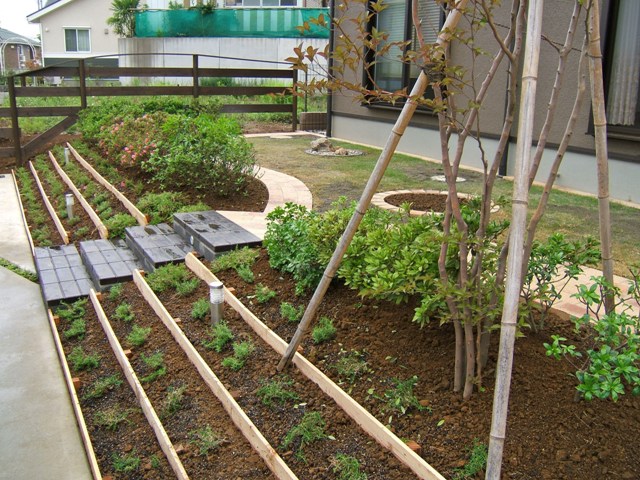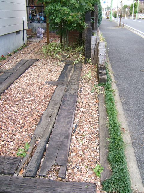 ![]() 枕木の周りは園芸スペースとして活用できる。 |
