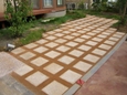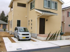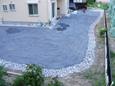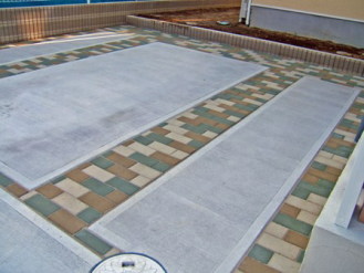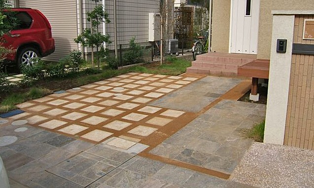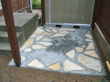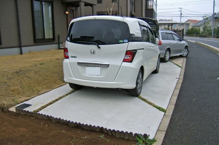 駐車場のすき間に敷いた砂利が飛び散って、困っているというお宅が結構あるものです。コンクリートで埋めてくれませんか、ということでした。しかしただのコンクリート一色にしてしまうのも芸がありません。そこで取った方法とは? | 千葉県 千葉ニュータウン 印西市 2011 |