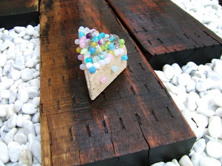 ![]() 上のレンガ工事で余った三角のレンガ片を、幼い女の子の姉妹が何とケーキに仕立てた。よく出来ました! |