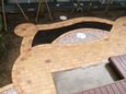 ![]() 枕木は子供さんが遊ぶための場所でもある。枕木下は、水はけが良いように砕石を敷き固め、砂で微調整して固定した。 |