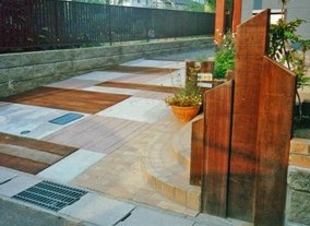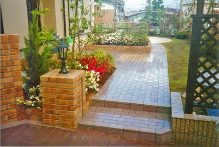 ![]() レンガとブロックを併用したアプローチ。 |