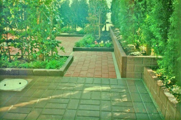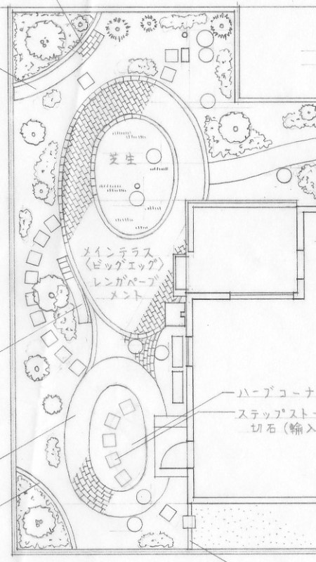 ![]() 植栽コーナーの手前は花壇に → 実際の設計図面。 |