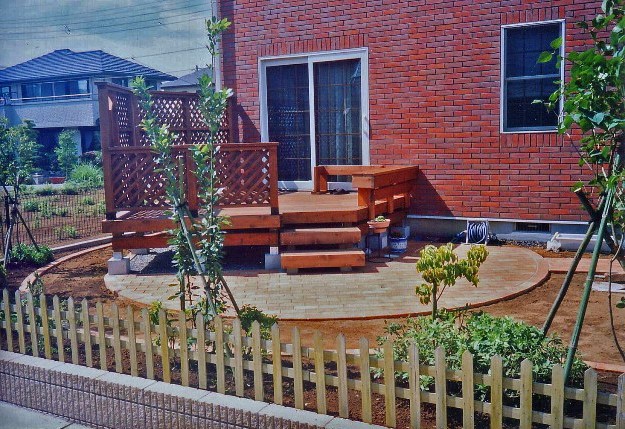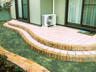 ![]() レンガ敷きテラスは動線を意識。 |