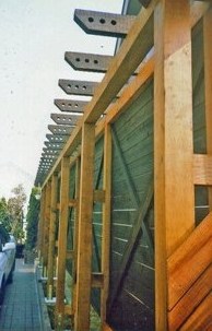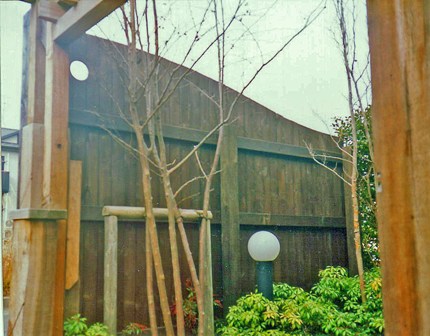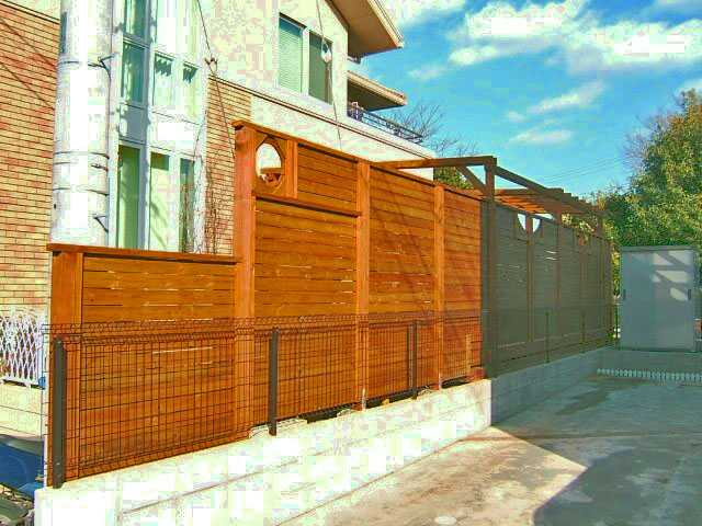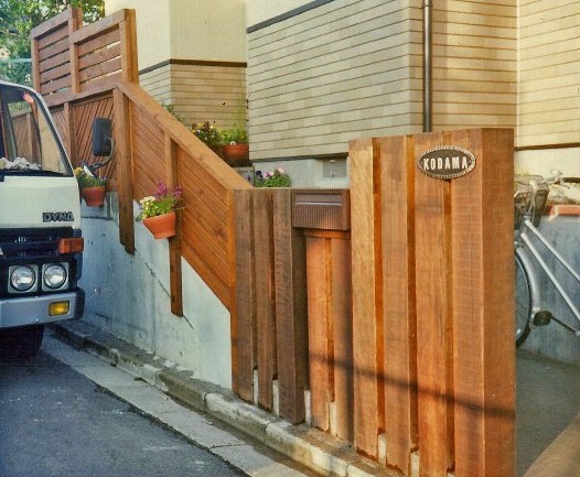 ![]() 背の高いウッドフェンス。カーブがダイナミック。 |