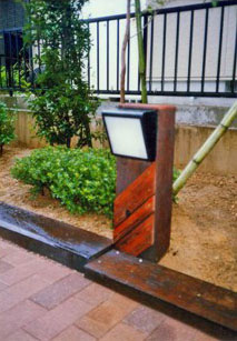 ![]() 第3の小テラスがアクセントに。 ![]() 枕木を使った創作照明。 |
