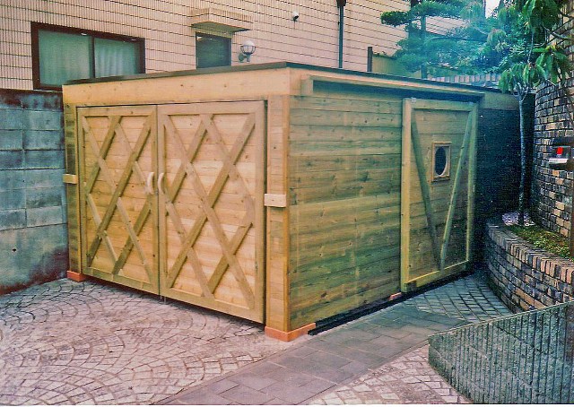 ![]() ウッド車庫。側面にもスライド扉がある。 |