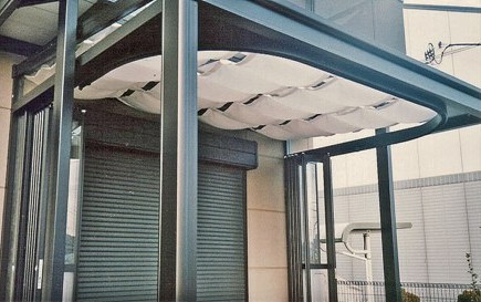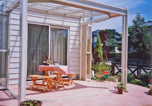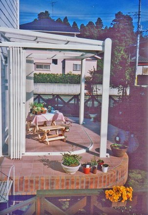 ![]() フルオープン、フルクローズのサンルーム。 現在では進化したバージョンが販売されている。 |
