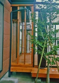 ![]() サンルーム内外をタイル貼りとしていて、様々な用途に使うことができる。 タイルは防汚技術のすぐれたINAX製。 |
