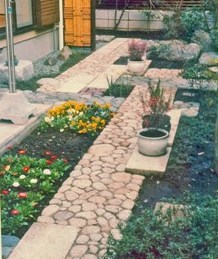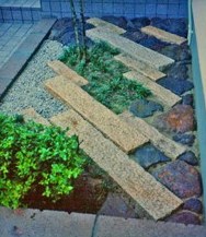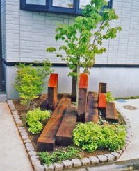 ![]() 殺風景な場所を、枕木と自然石で楽しい空間に。 |
