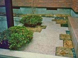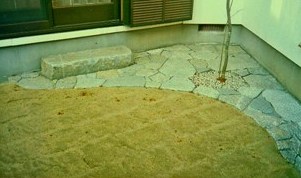 ![]() 味気なかった洋風の中庭を和風の石庭に大改造。相当に手間のかかった繊細な仕事になっている。 |