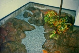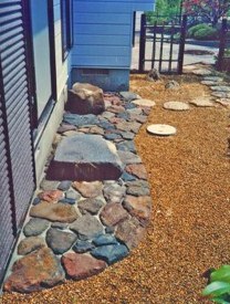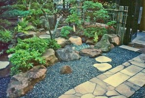 ![]() ミカゲ石と秋保石による造形。玄関脇の小スペースだ。 |