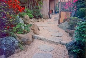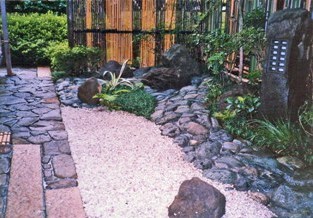 ![]() 伊勢石を用いた延べ段を現代風にアレンジした。 |