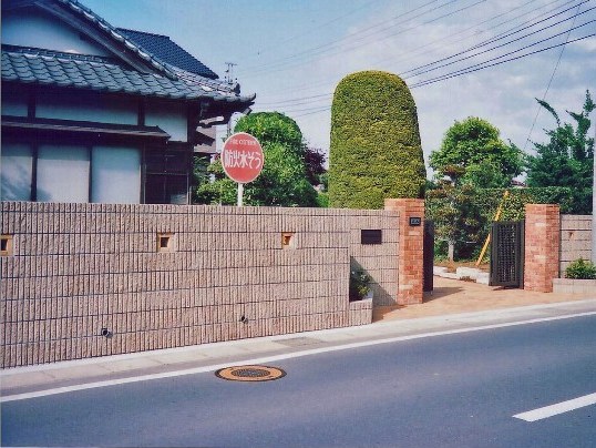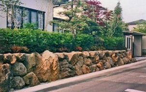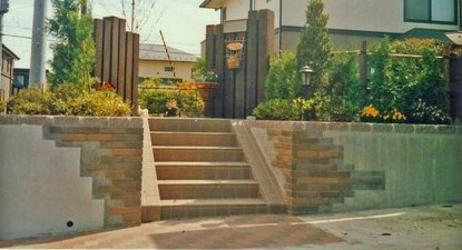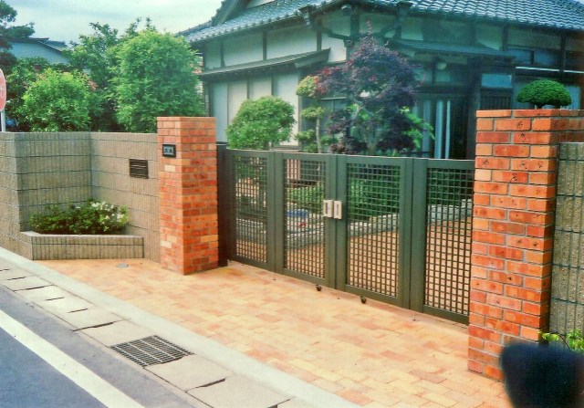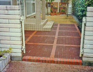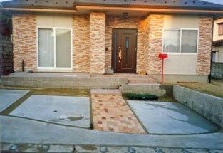 ![]() 本格的な門柱と化粧ブロック塀。駐車場はレンガ敷き。 |