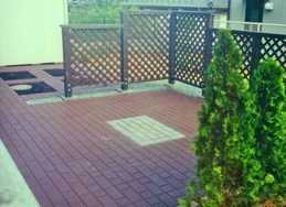 ![]() 花壇の組み合わさったテラス。 |