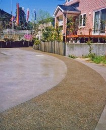![]() 駐車場の中の洗い出しの園路。 |